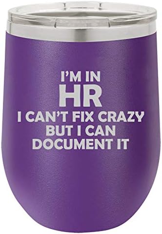 12 Oz Double Wall Vacuum Insulated Stainless Steel Stemless Wine Tumbler Glass Coffee Travel Mug With Lid I M In Hr I Can T Fix Crazy Funny Human Resources Purple Arzhurnotbisio